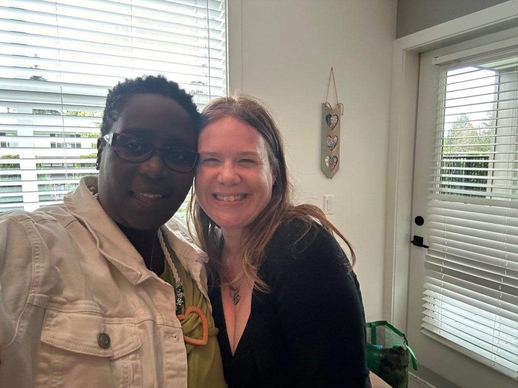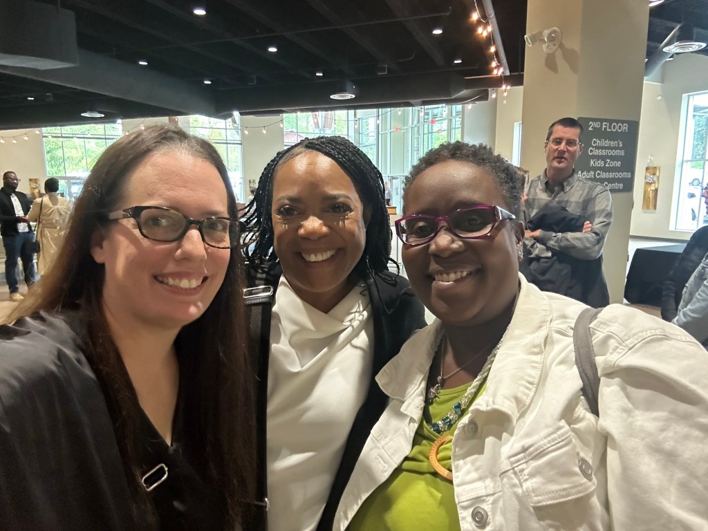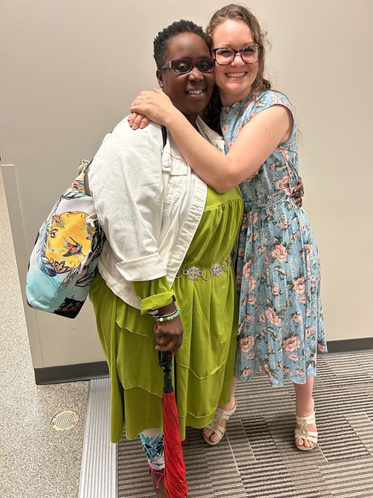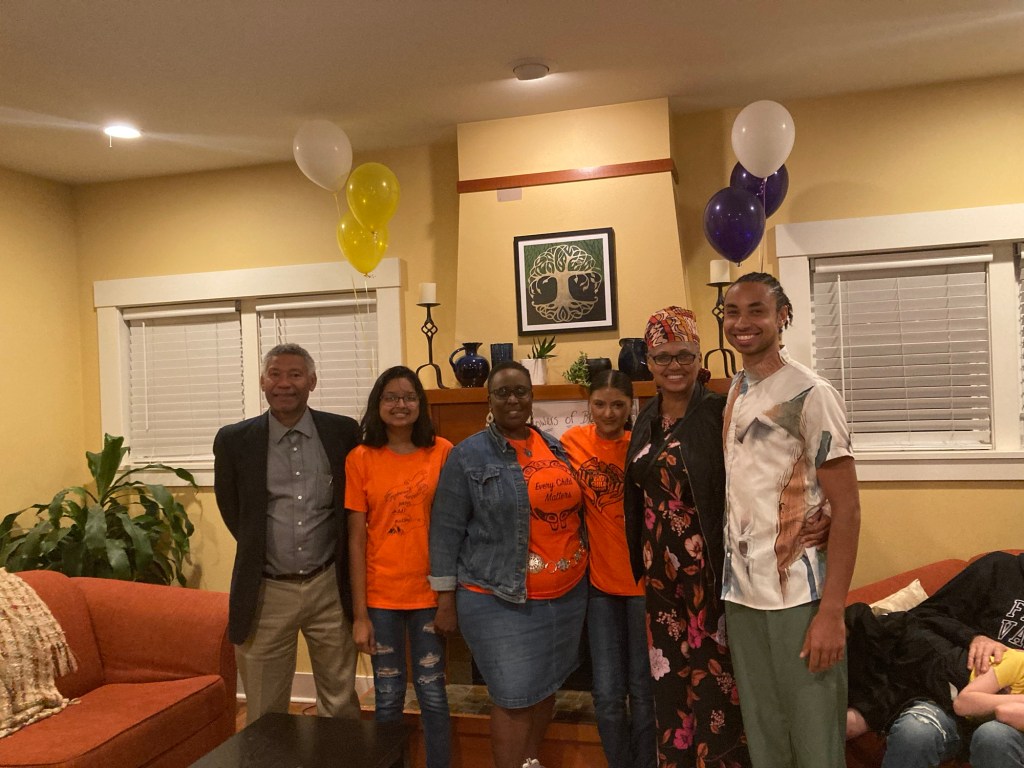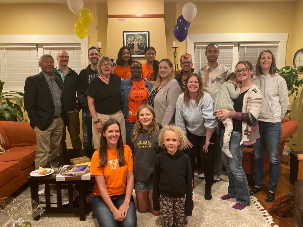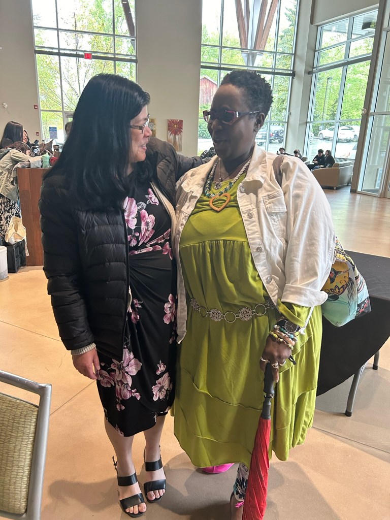 I didn’t have time to make it, and I did have time to cut it. So I cut it and brought the fabric with me. When I got to the venue, Sxexet Spath ‘s welcoming warrior-defender energy greeted me, and Cally’s encouraging wink and smile reminded me that no matter where I was, I was with family.